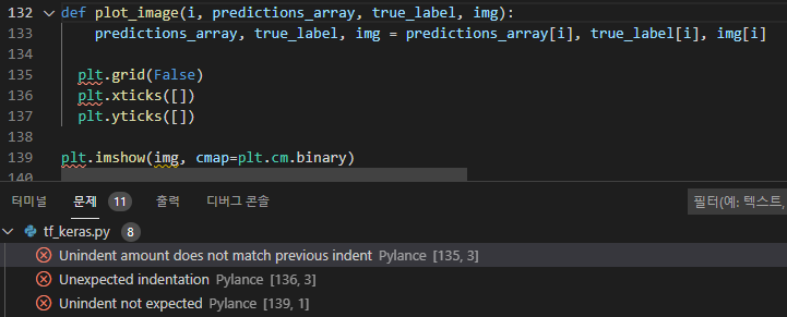 Unindent amount does not match previous indent 에러