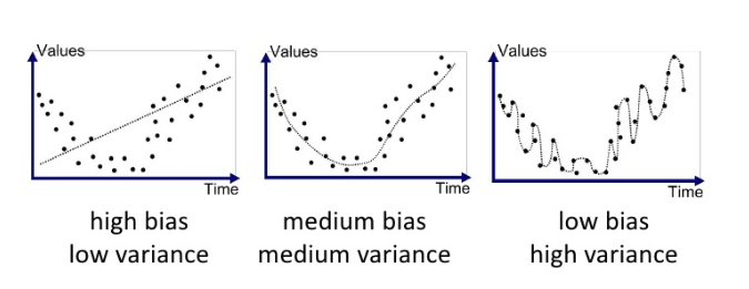 분산 (variance) - 예측값들이 자기들끼리 대체로 멀리 흩어져있으면 결과의 분산(variance)이 높다