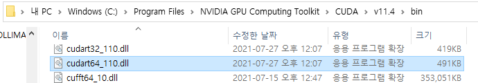 (cuda_11.4.1_471.41_win10.exe 약 2.8기가)