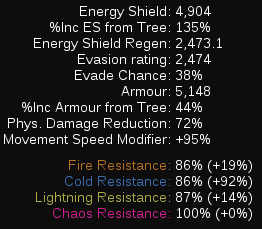 (맥스 90으로 부족한 부분은 갑옷에서 최대저항치+1 타락옵션 과 고상한 오만 우월성 15프로 두개)