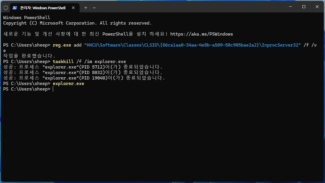 추가 옵션 표시를 누르면 기존으로 돌아가지만 여전히 귀찮습니다.기존 윈도우 10 우클릭으로 변경 방법 입니다.