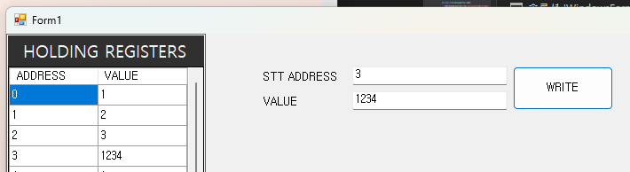 우측이 클라이언트의 홀딩 레지스터 1,2,3,3,2,1