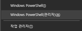 - Windows PowerShell(관리자)(A) 클릭