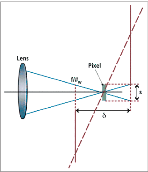 심도는 픽셀의 크기 내에서 디포커싱이 되더라도 완벽히 포커싱될때와 마찬가지로 픽셀 하나가 반응 하는 것이므로 무관
