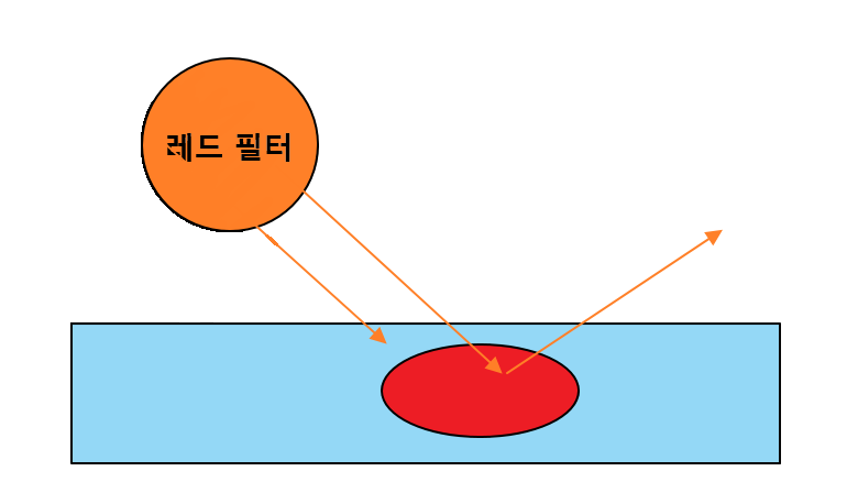 - 레드필터 사용 - 빨간색 반사로 해당 부분 희게 나옴